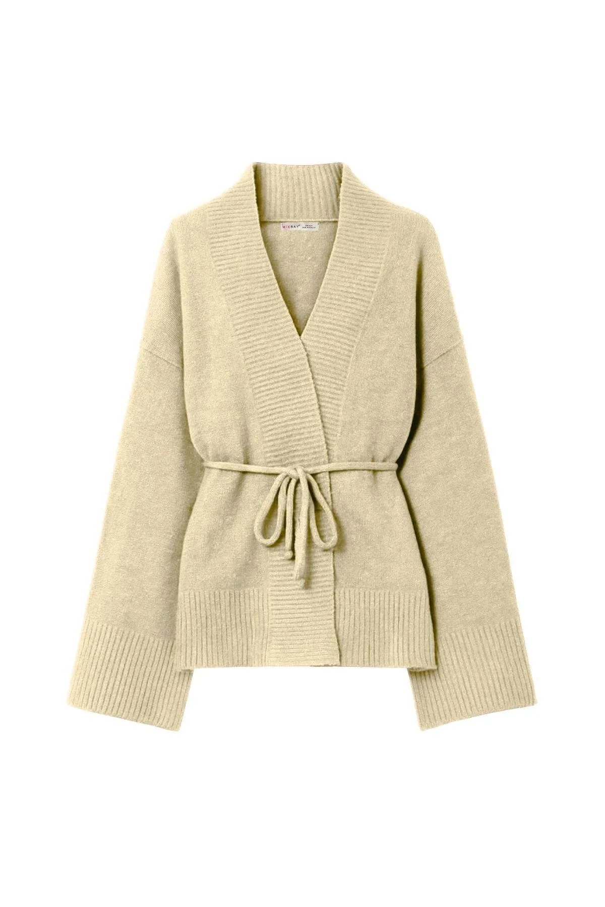 كارديجان بأكمام طويلة وتصميم متعدد الألوان وفتحة رقبة على شكل حرف V، مصنوع من قماش محبوك ناعم ومريح. مثالي للربيع والخريف، لإطلالة أنيقة وعصرية.