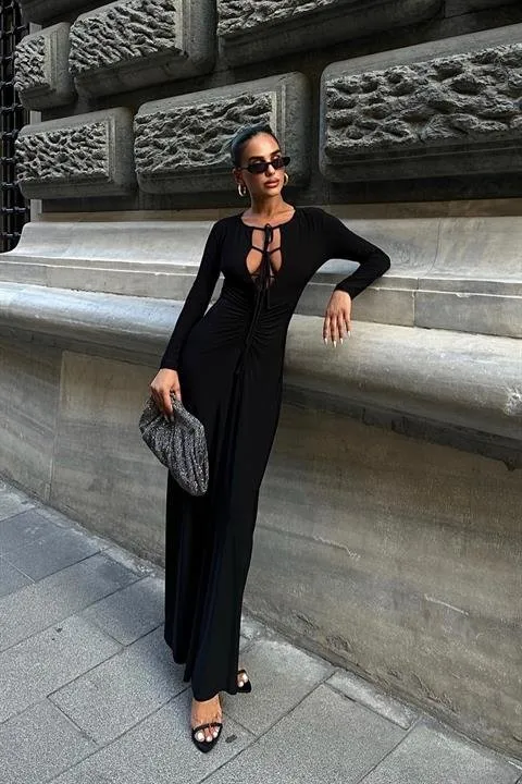فستان قصير بأكمام واسعة مزمومة من الاسفل وكشكشة أمامية للنساء