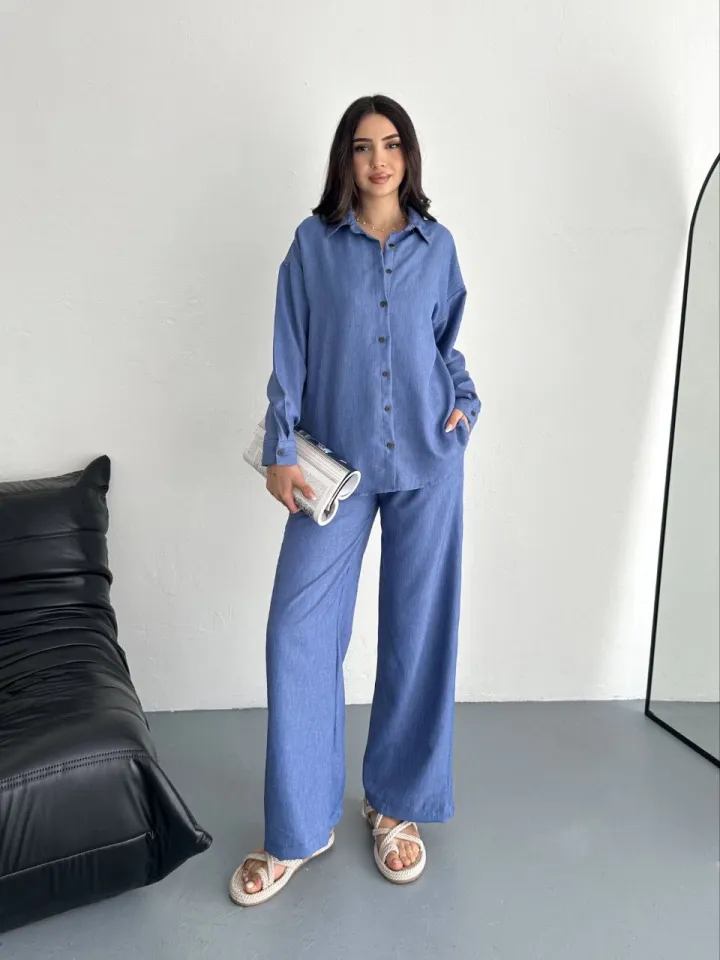 طقم بنطال بأكمام طويلة وياقة قائمة للنساء - Beyond Store
