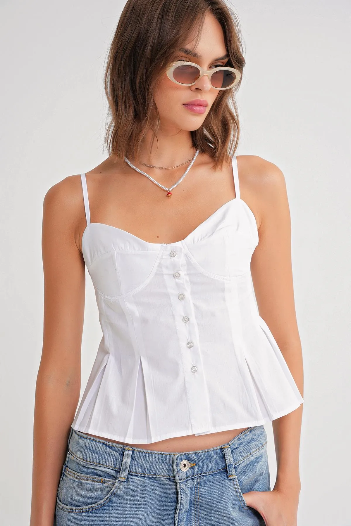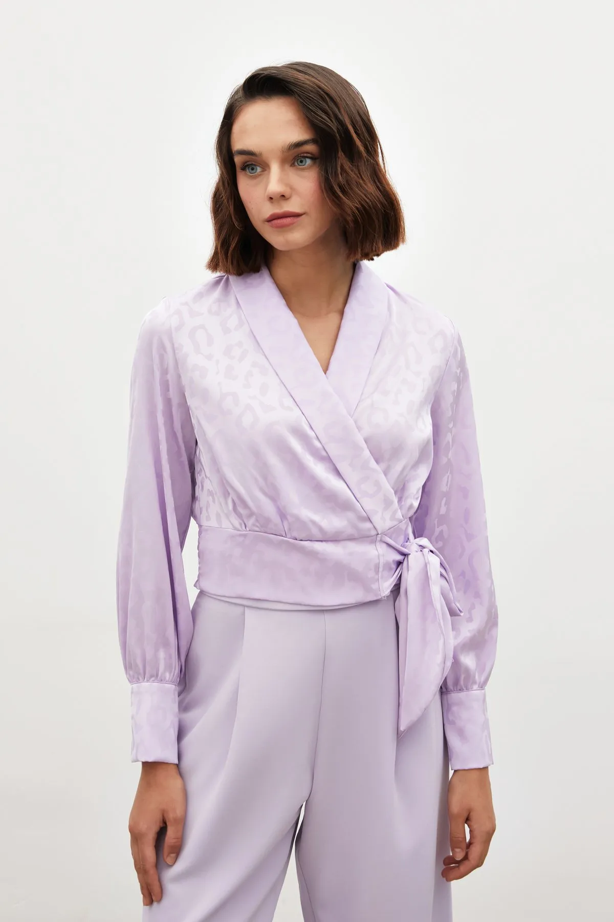 بلوزة سادة بكم طويل وكتف واحد تضيف لمسة أنثوية ناعمة بتصميم عصري، مثالية لعشاء بسيط، طلعة مسائية أو لوك ويكند أنيق.