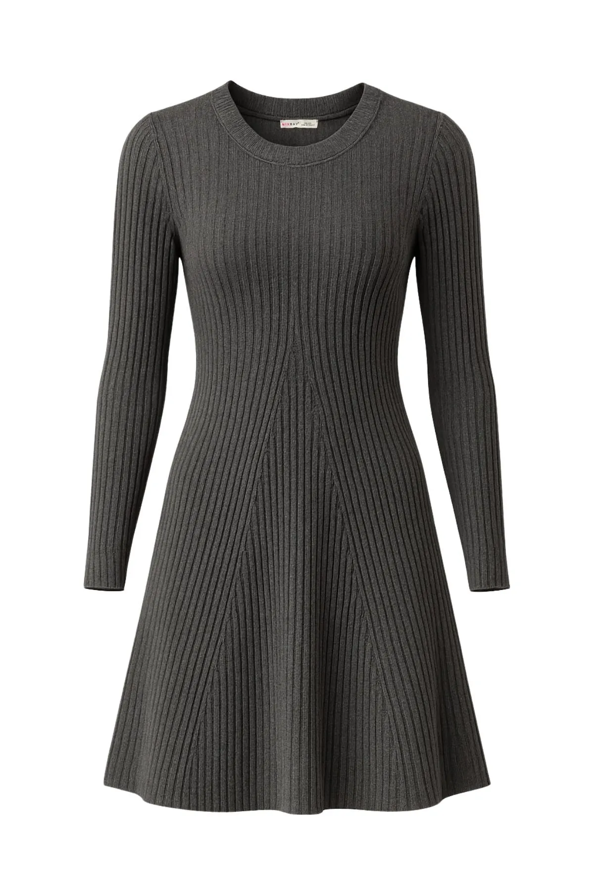 فستان قصير محبوك بأكمام طويلة ورقبة عالية مزخرف بخطوط، تصميم دافئ وكاجوال يناسب الأيام الباردة والطلعات اليومية