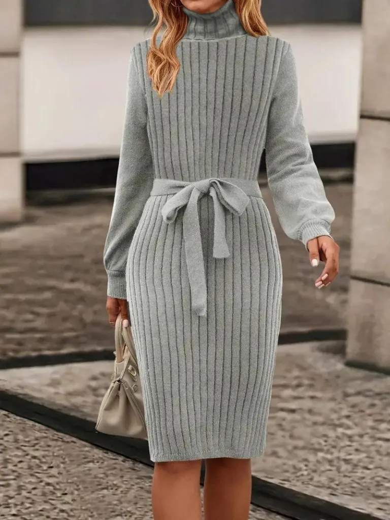 إحساس الراحة مع ستايل كاجوال بسيط، فستان قصير بياقة عالية وأكمام طويلة يناسب طلعات الصبح السريعة أو مشوار كوفي مع صديقاتك، لإطلالة مرتبة بدون تكلف.