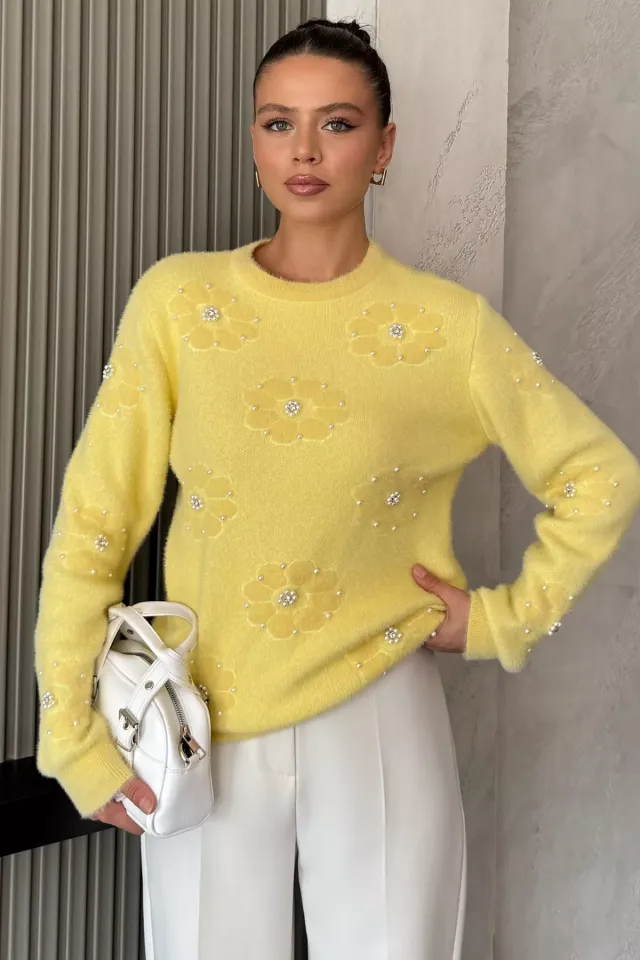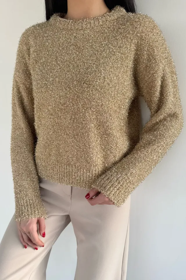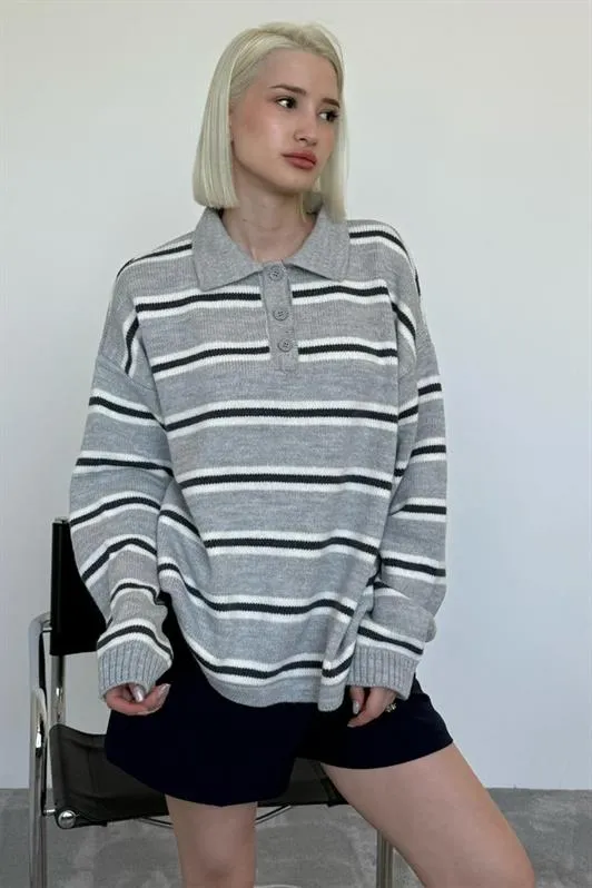 سويتر محبوك بأكمام طويلة وأكتاف مكشوفة مصنوع من قماش مضلع. ناعم، مثالي لإطلالة أنيقة في الطقس المعتدل.