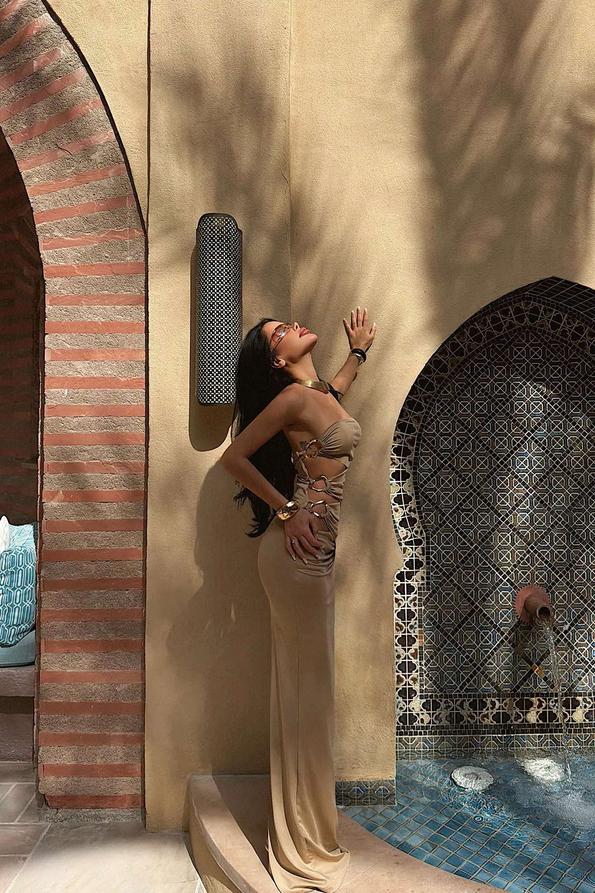 - نوع الأكمام : أكمام واسعة مزمومة من الاسفل