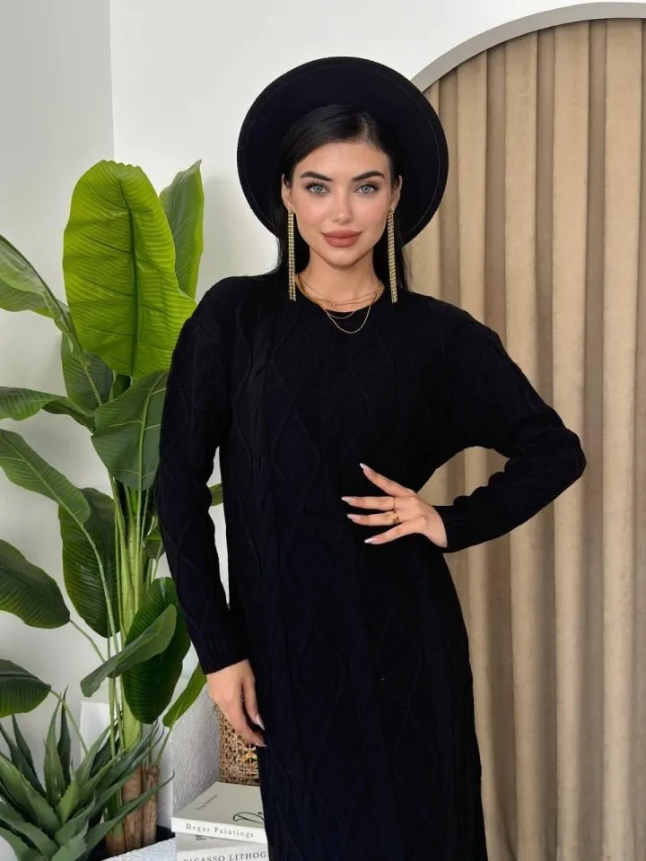 فستان ميدي سادة بأكمام واسعة مزمومة من الاسفل وصدر مزدوج للنساء