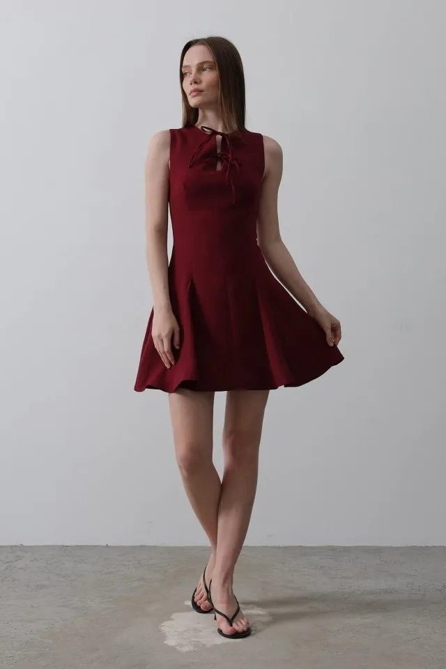 فستان قصير كاجوال محبوك بأكمام طويلة وتفاصيل مخرمة ناعمة وياقة V، يمنحك إطلالة أنيقة ومريحة تناسب الطلعات اليومية أو الفعاليات النهارية المريحة.