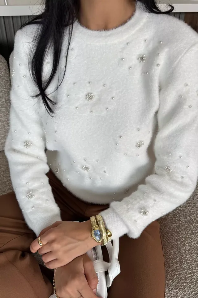 سويتر نسائية محبوكة بأكمام طويلة ورقبة دائرية مخططة - Beyond Store