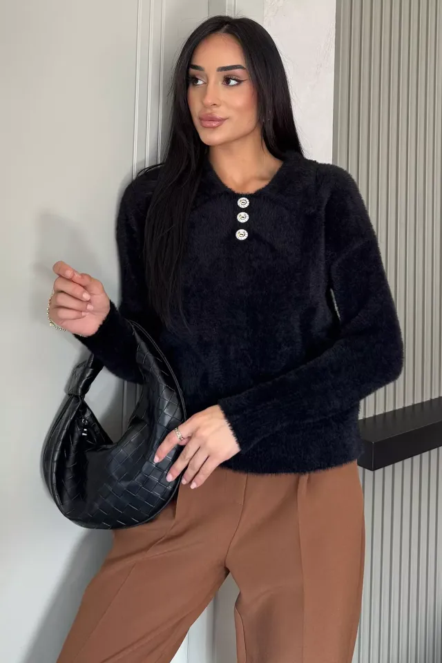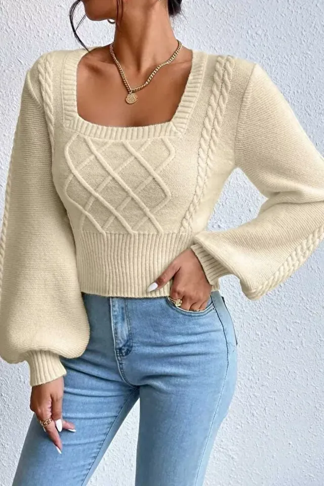 سويتر نسائية محبوكة بأكمام طويلة ورقبة دائرية مخططة