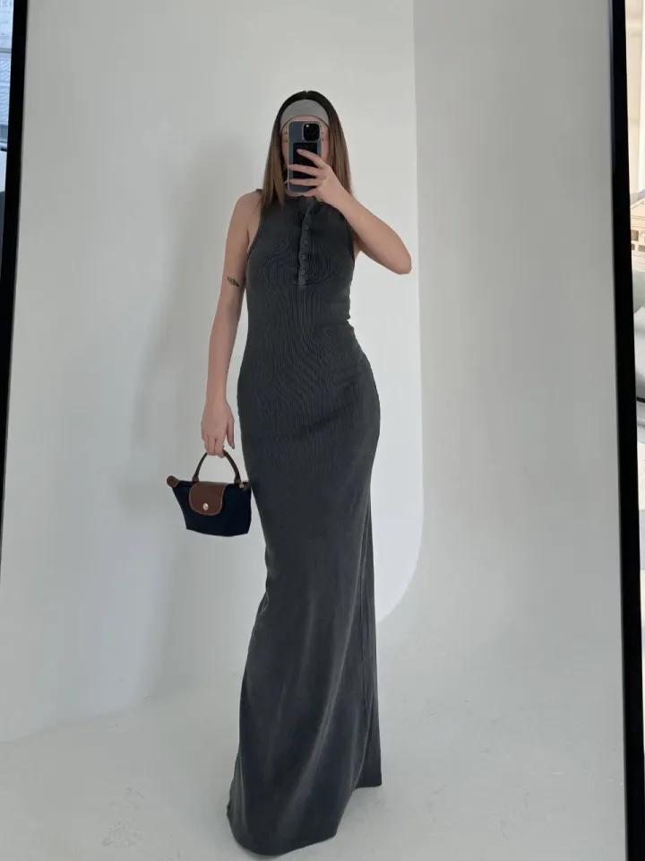 فستان ميدي بأكمام كاب وياقة دائرية كلاسيكية، مناسب للارتداء اليومي أو التجمعات الكاجوال التي تتطلب إطلالة بسيطة وأنيقة.