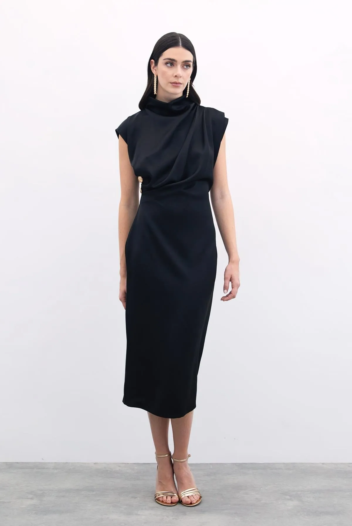 فستان ميدي بصدر مزدوج وأكتاف مكشوفة للنساء