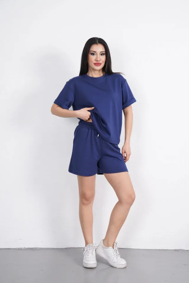 طقم شورت بأكمام قصيرة وتفاصيل مطرزة واكمام قصيرة - Beyond Store