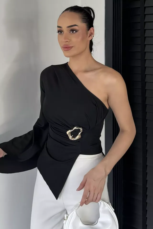بلوزة أساسية منقوشة بأكمام قصيرة وياقة دائرية، لمسة خفيفة تناسب الطلعات السريعة أو جلسات الويكند المريحة أو تنسيقاتك اليومية.