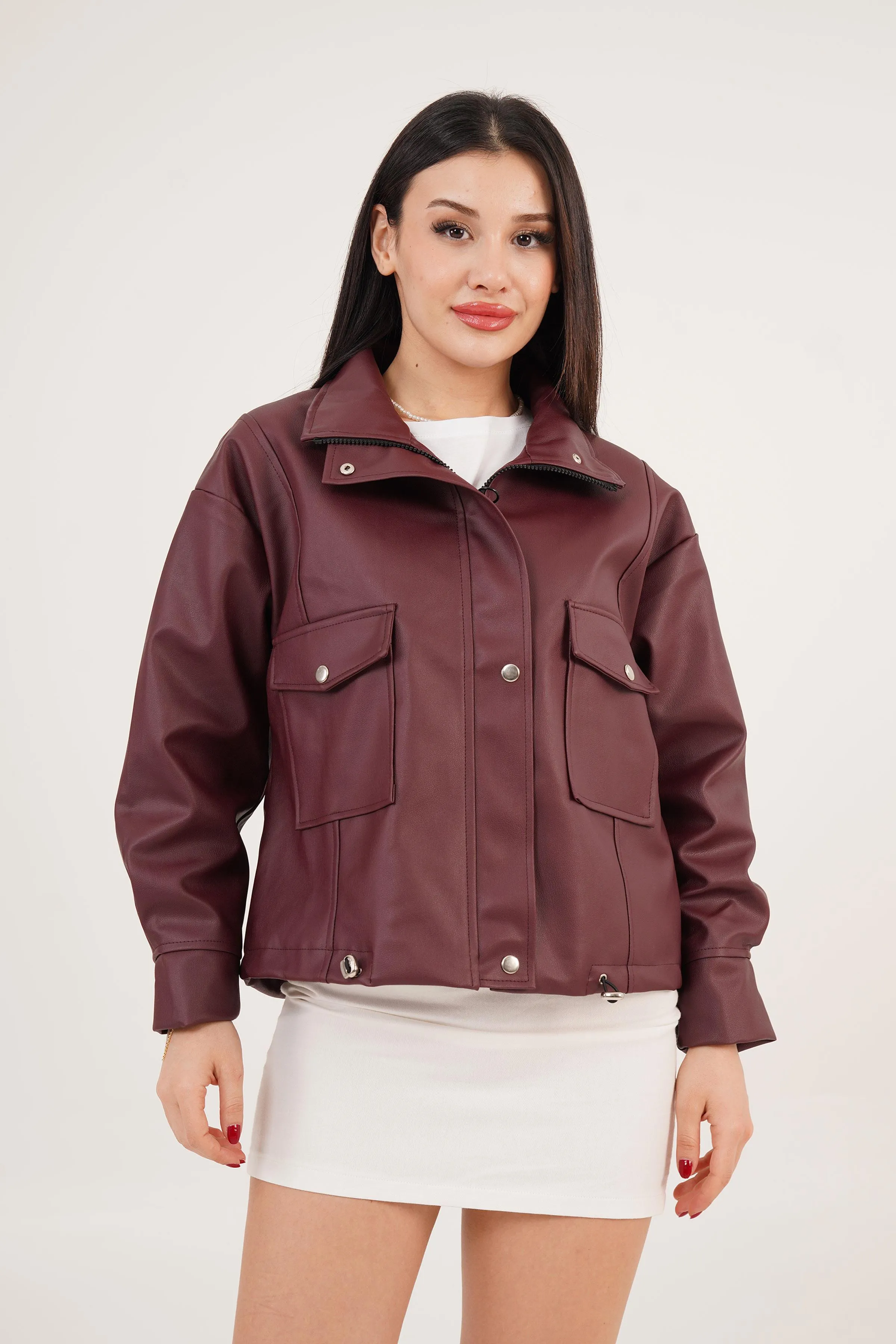 جاكيت بومبر مطبوع بياقة صينية للنساء