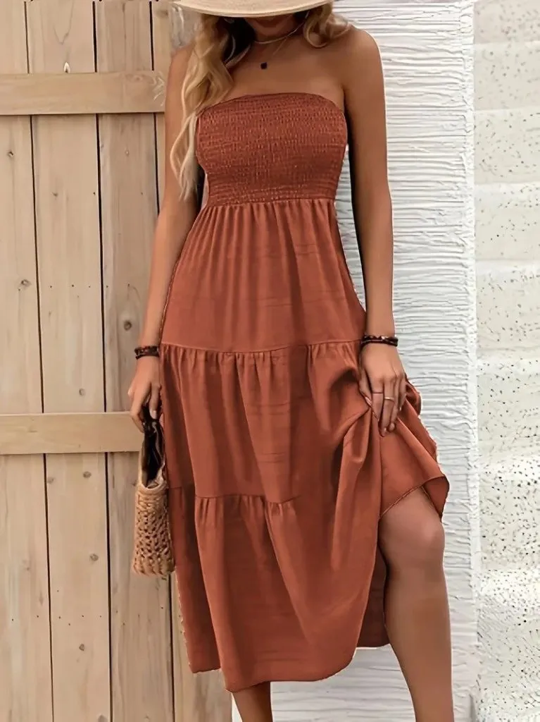فستان ماكسي كاجوال بأكمام قصيرة وفتحة عند الفخذ يمنحك إحساس الراحة مع لمسة جاذبية، مثالي لطلعات البحر، الأيام الهادئة، أو أي مناسبة تحبي فيها تجمعي بين البساطة والأنوثة.