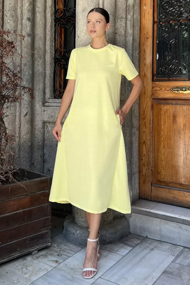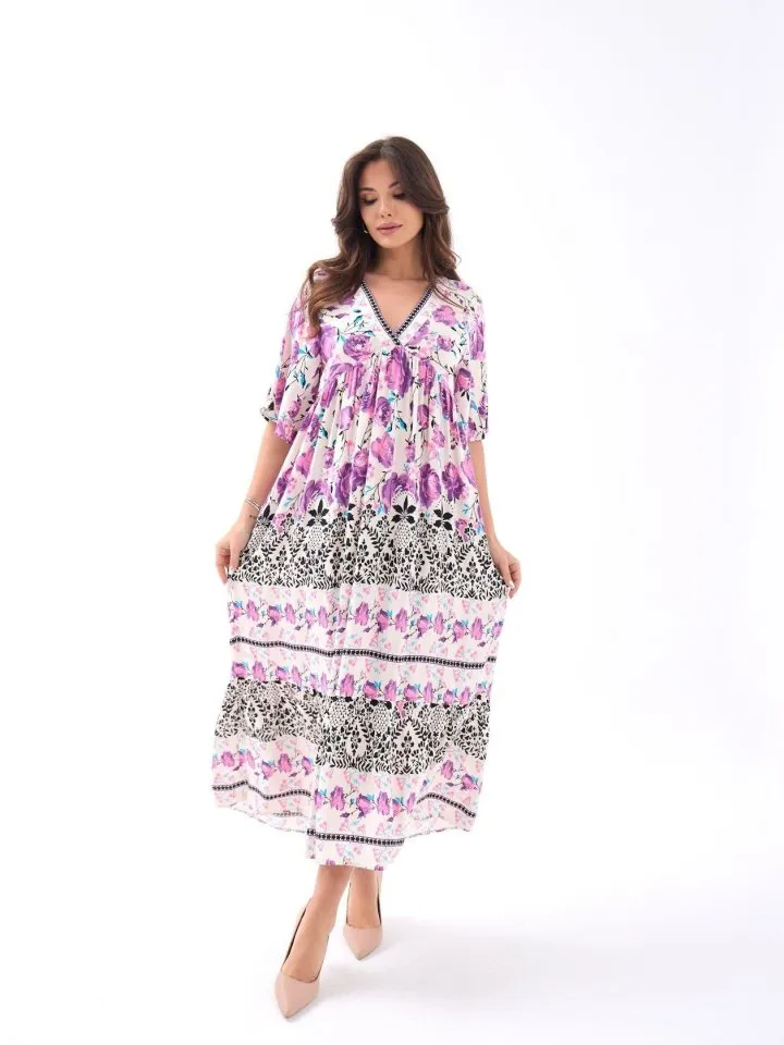 فستان ميدي مزدوج الصدر بأكمام منتفخة وكشكش وحزام يحدد الخصر، تصميم يجمع بين الرقي والجرأة ليمنحك حضوراً مميزاً في العمل، المناسبات العائلية، أو أي يوم تحبين تظهري فيه بثقة وأناقة.