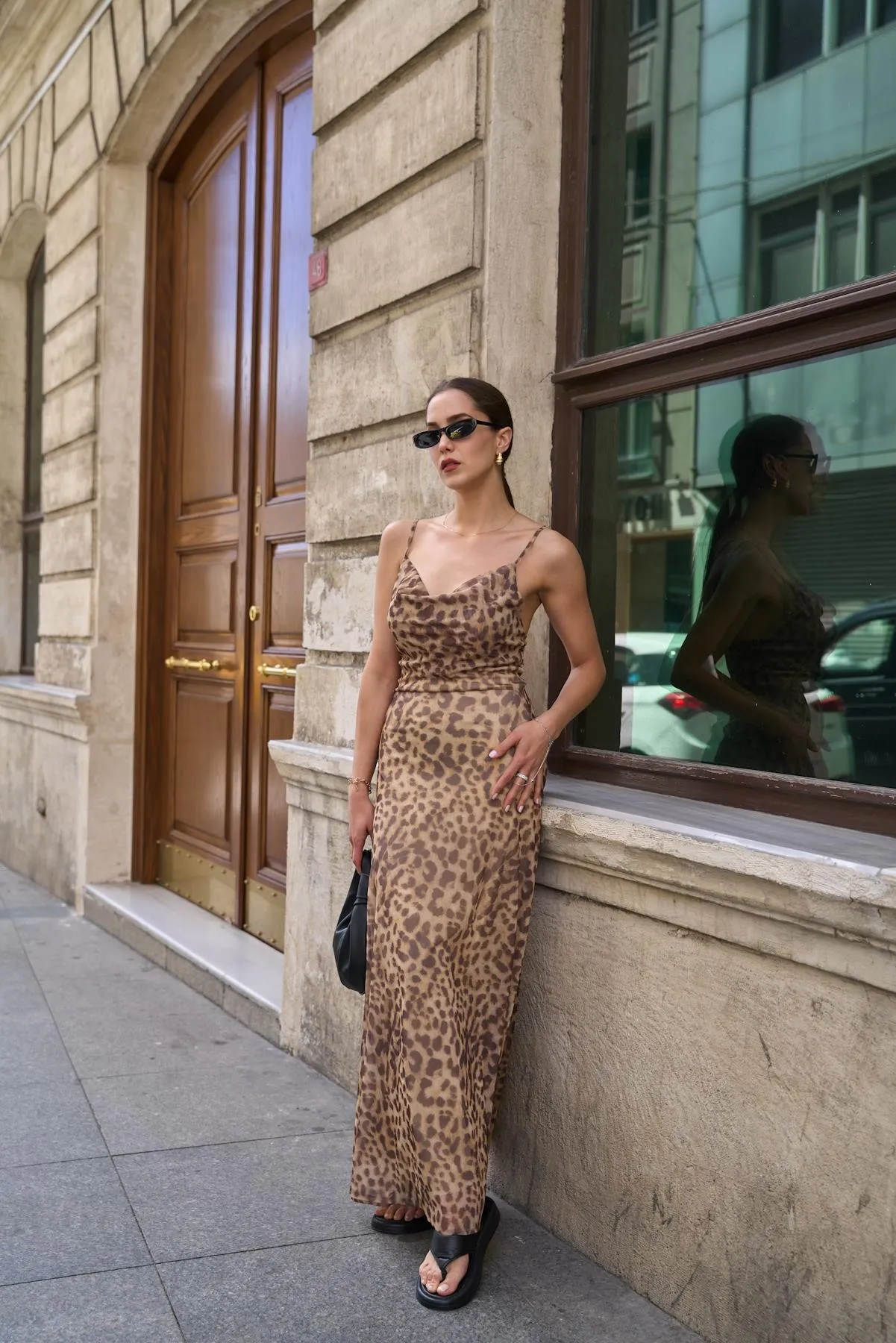 فستان قصير منقوش بأكتاف مكشوفة وحزام يحدد الخصر، تصميم أنيق ومرح يضفي لمسة أنثوية تناسب جلسات البرانش، الحفلات، أو الطلعات الكاجوال التي تريدين فيها إطلالة مميزة.