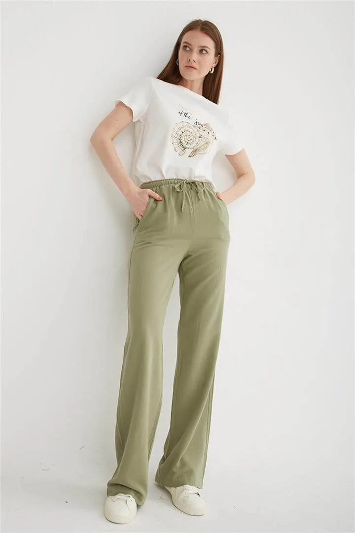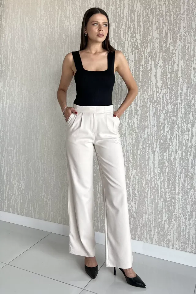 بنطلون نسائي واسع الساق بخصر مطاطي، مصنوع من قماش ساتان فاخر بطبعة جلد الفهد الجريئة. يمنحكِ إطلالة أنيقة وعصرية مع راحة تدوم طوال اليوم. مثالي للحفلات والمناسبات الخاصة. قابل للغسل في الغسالة على درجة حرارة 30 درجة مئوية.