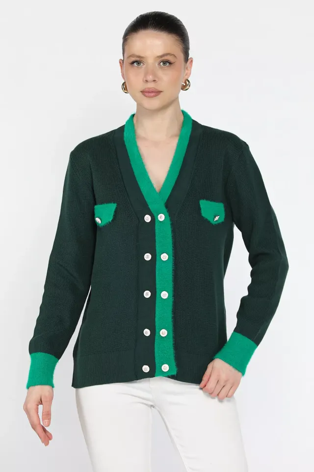 كارديجان كاجوال بأكمام طويلة وفتحة رقبة على شكل حرف V وتفاصيل كشكش