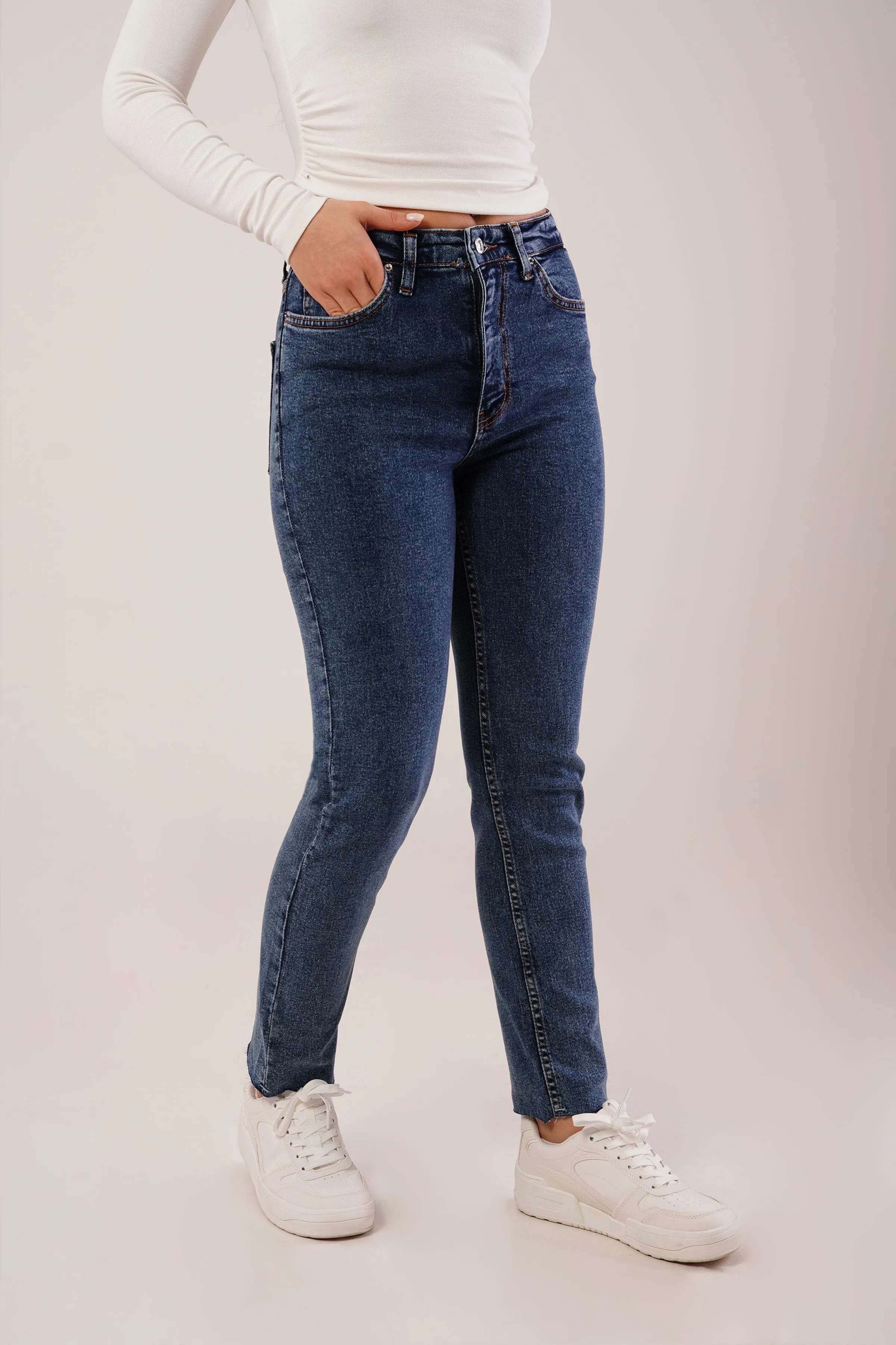 بنطلون جينز نسائي سادة واسع الساق بخصر مطاطي، مصنوع من قطن ١٠٠٪ لراحة تدوم طويلًا. تصميم متعدد الاستخدامات وأنيق، قابل للغسل على درجة حرارة ٣٠ درجة مئوية.