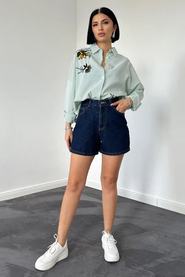 نسائي بتصميم مريح بأكمام طويلة و أزرار أمامية، يتميز بتفاصيل درز مكشوفة لإضفاء لمسة عصرية وأنيقة مثالية للارتداء اليومي.