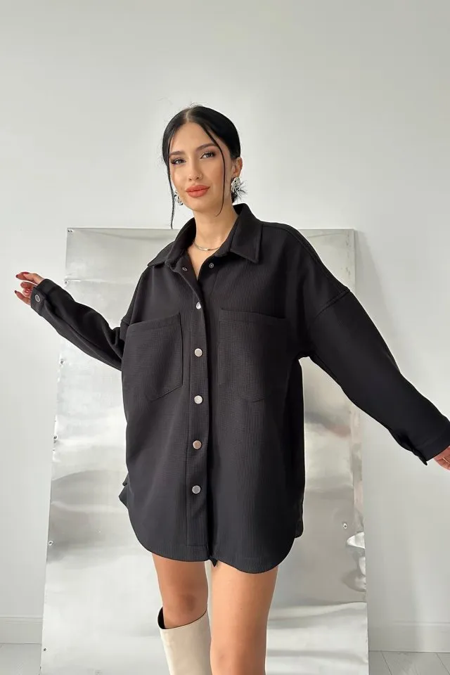 قميص نسائي سادة بأكمام طويلة وأزرار أمامية، يتميز بتصميم بسيط وأنيق مثالي للمظهر اليومي والرسمي.