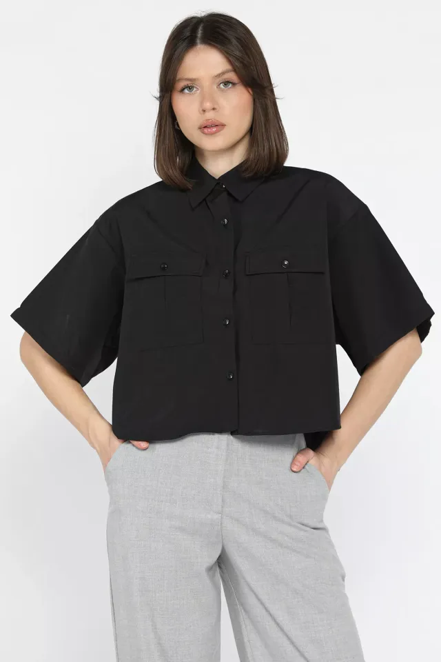 قميص سادة بأكمام طويلة وأزرار أمامية