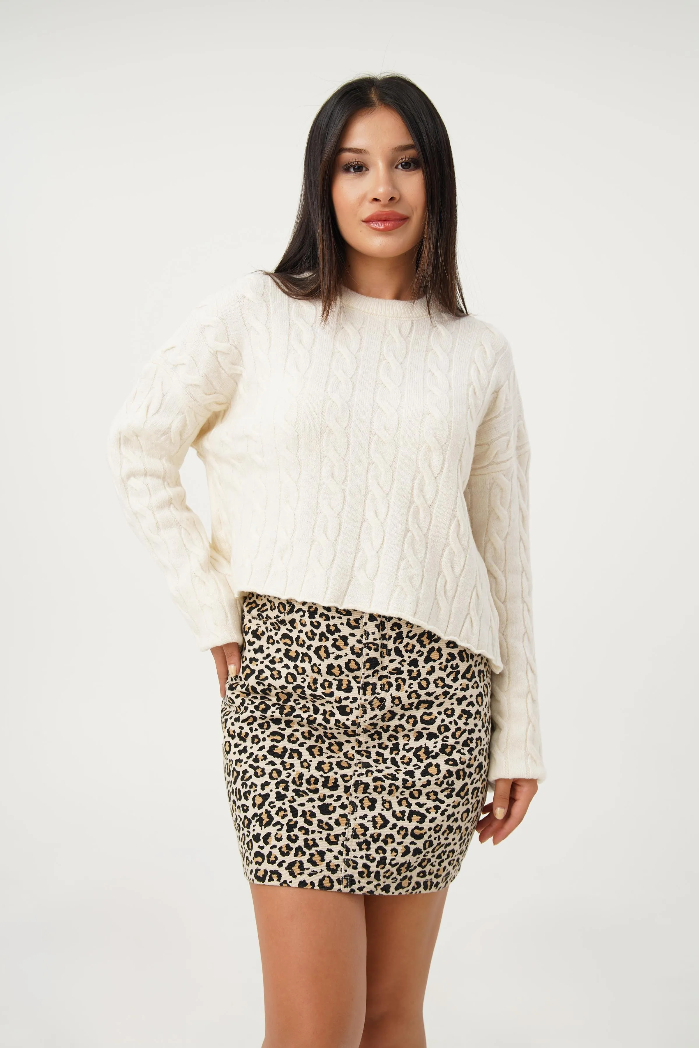 سويتر محبوك سادة بياقة عالية للنساء - Beyond Store