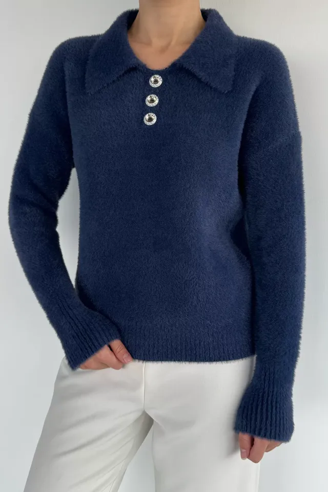 سويتر محبوك بأكمام طويلة و ياقة عالية للنساء