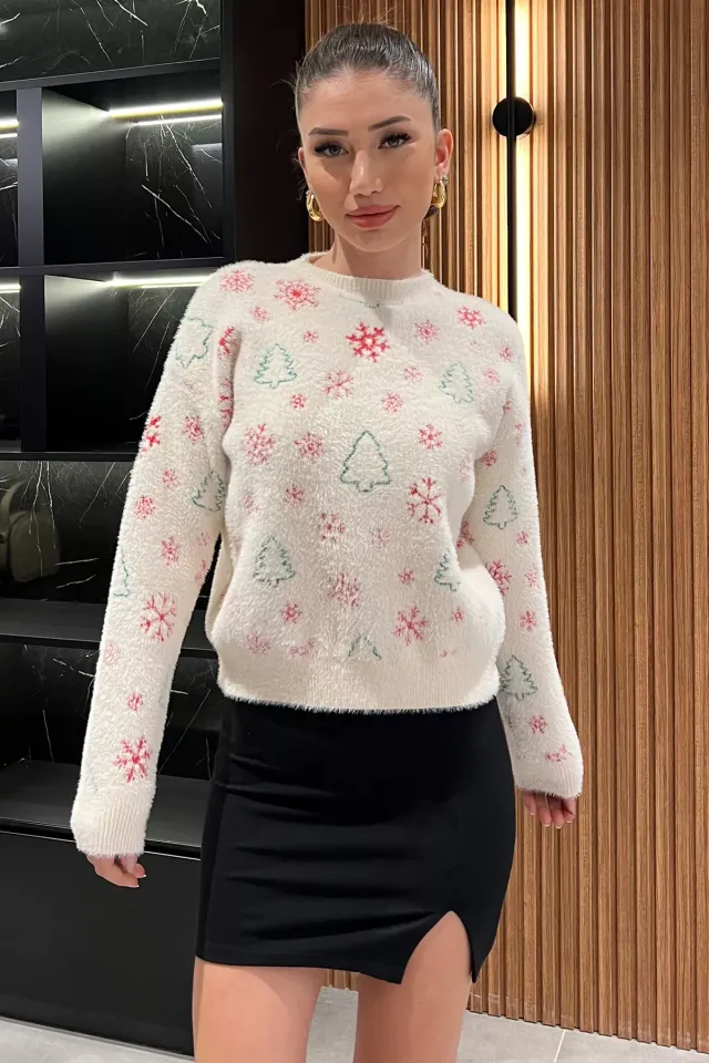 سويتر نسائي محبوك بقماش مضلع وياقة عالية، أنيق ويوفر دفئًا مثاليًا للشتاء. مريح وسهل التنسيق مع مختلف الإطلالات.