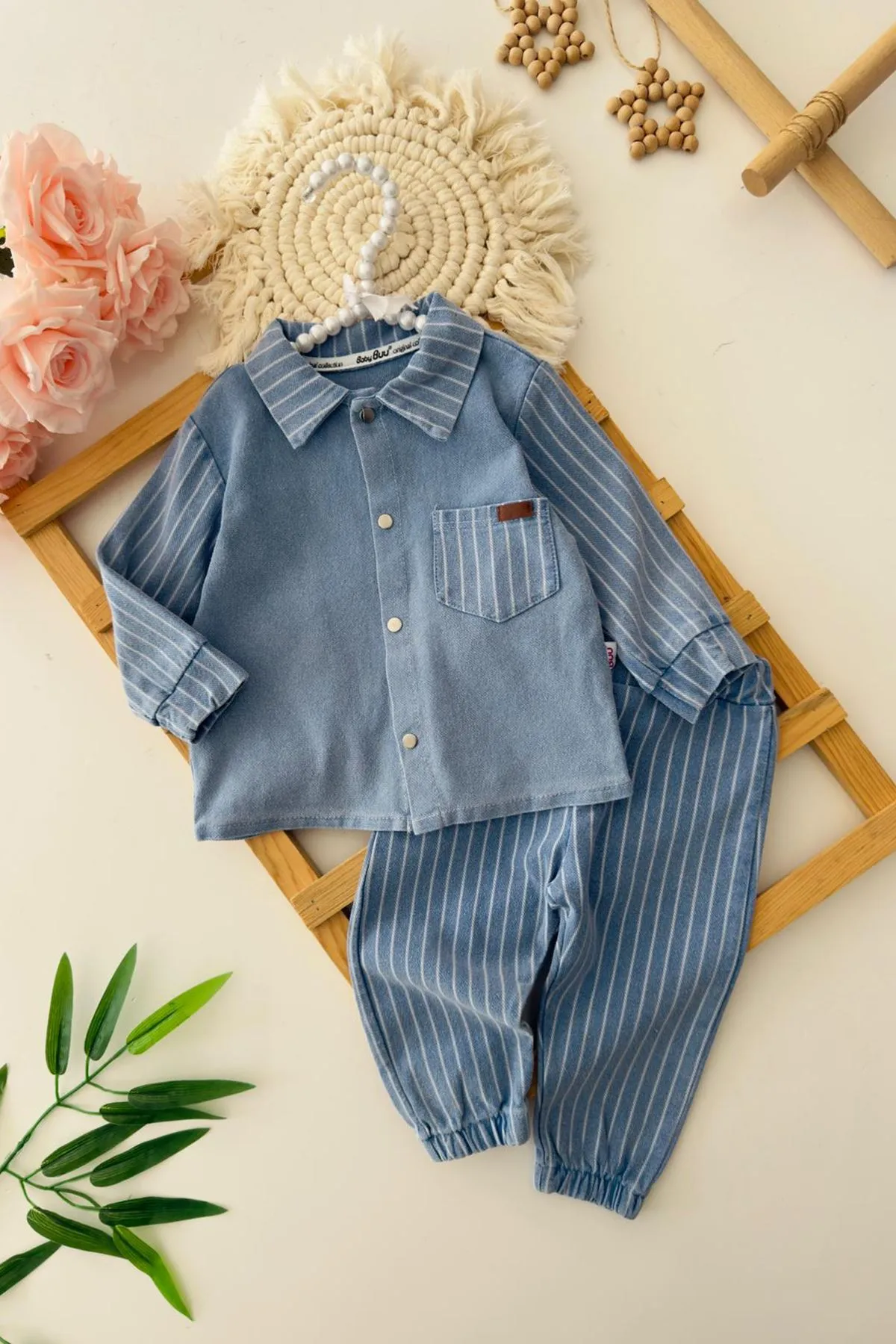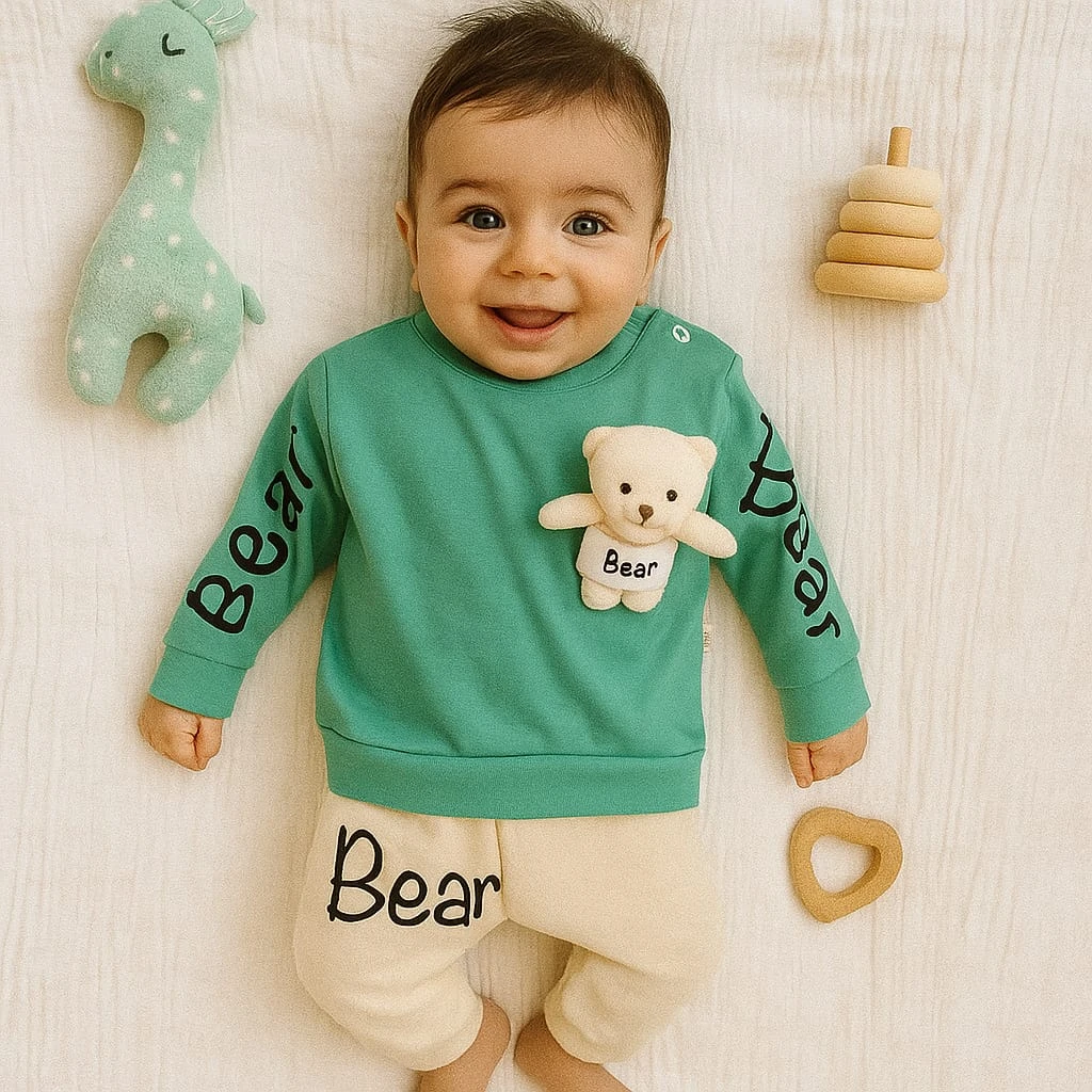 بيجامة للاولاد الصغار بتصميم مطبوع وأكمام طويلة، مصنوعة من خليط مريح من القطن، الليكرا، والبوليستر. تحتوي على جيب على الجانبين وأزرار على الأكتاف لسهولة الارتداء. مناسبة لفصول الربيع، الشتاء، والخريف. يمكن غسله على درجة حرارة 40 درجة مئوية.