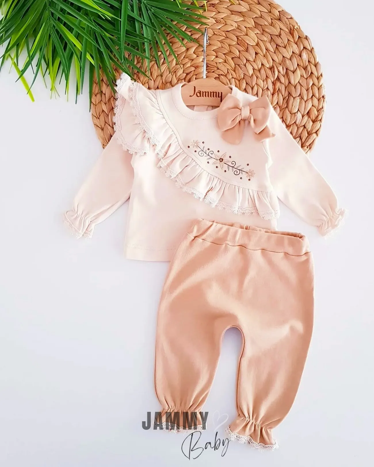 طقم للبنات الرضع بأكمام قصيرة وياقة دائرية وطبعة باليرينا مع ربطة عنق - Beyond Store