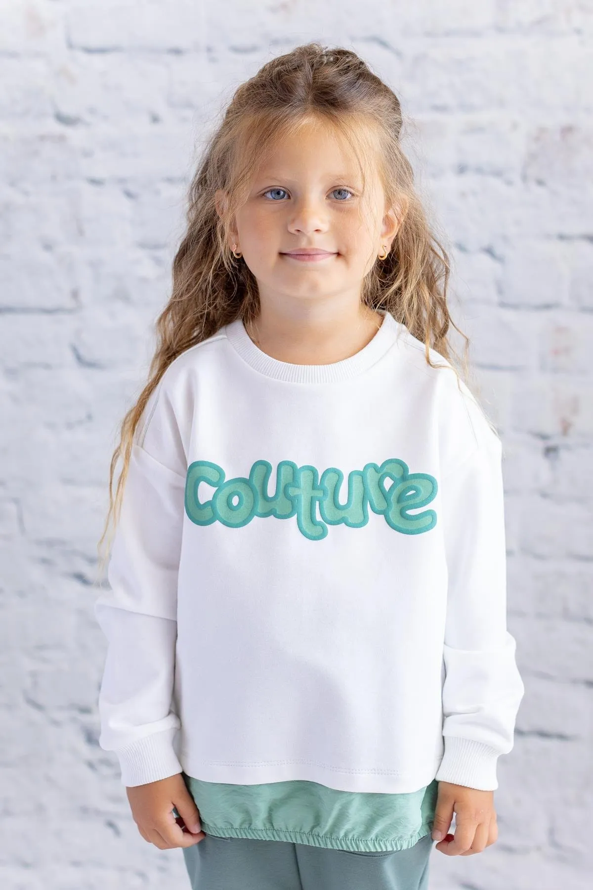 سويت شيرت بناتي بأكمام طويلة و قصة كتف منخفضة بكشكشة و تفاصيل مخرمة
