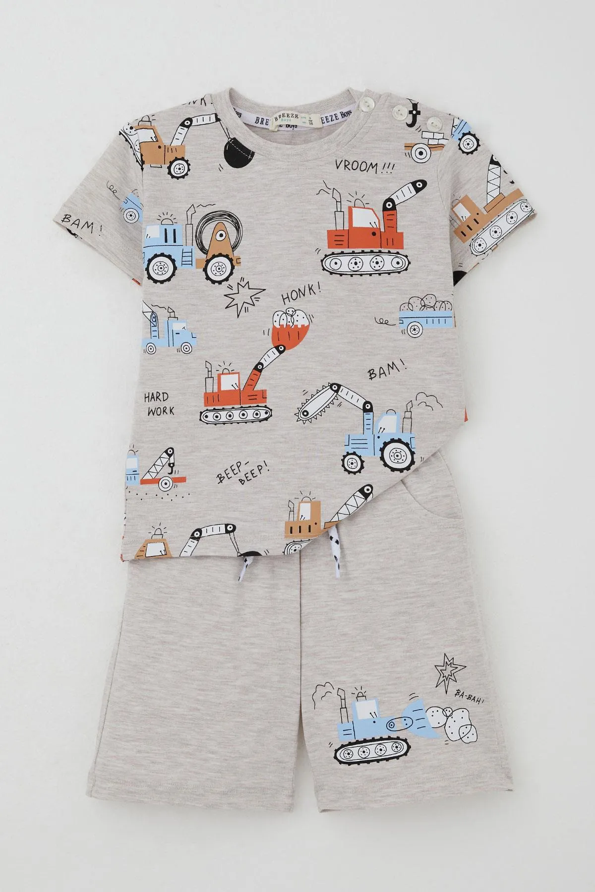 طقم شورت مطبوع بياقة دائرية للأولاد - Beyond Store