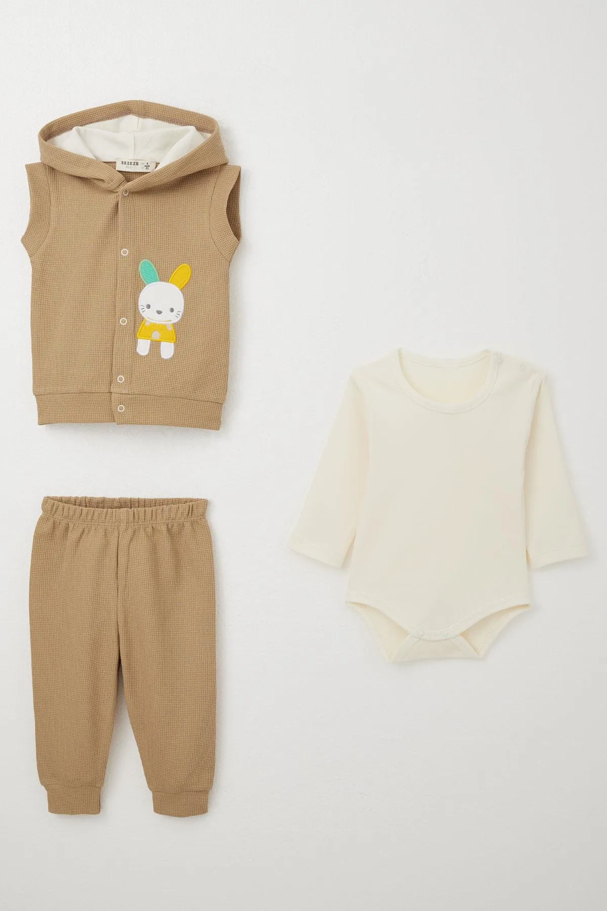 " inertia> طقم أفرول مطبوع بأزرار كبس أمامية مع قبعة للأولاد الرضع - Beyond Store