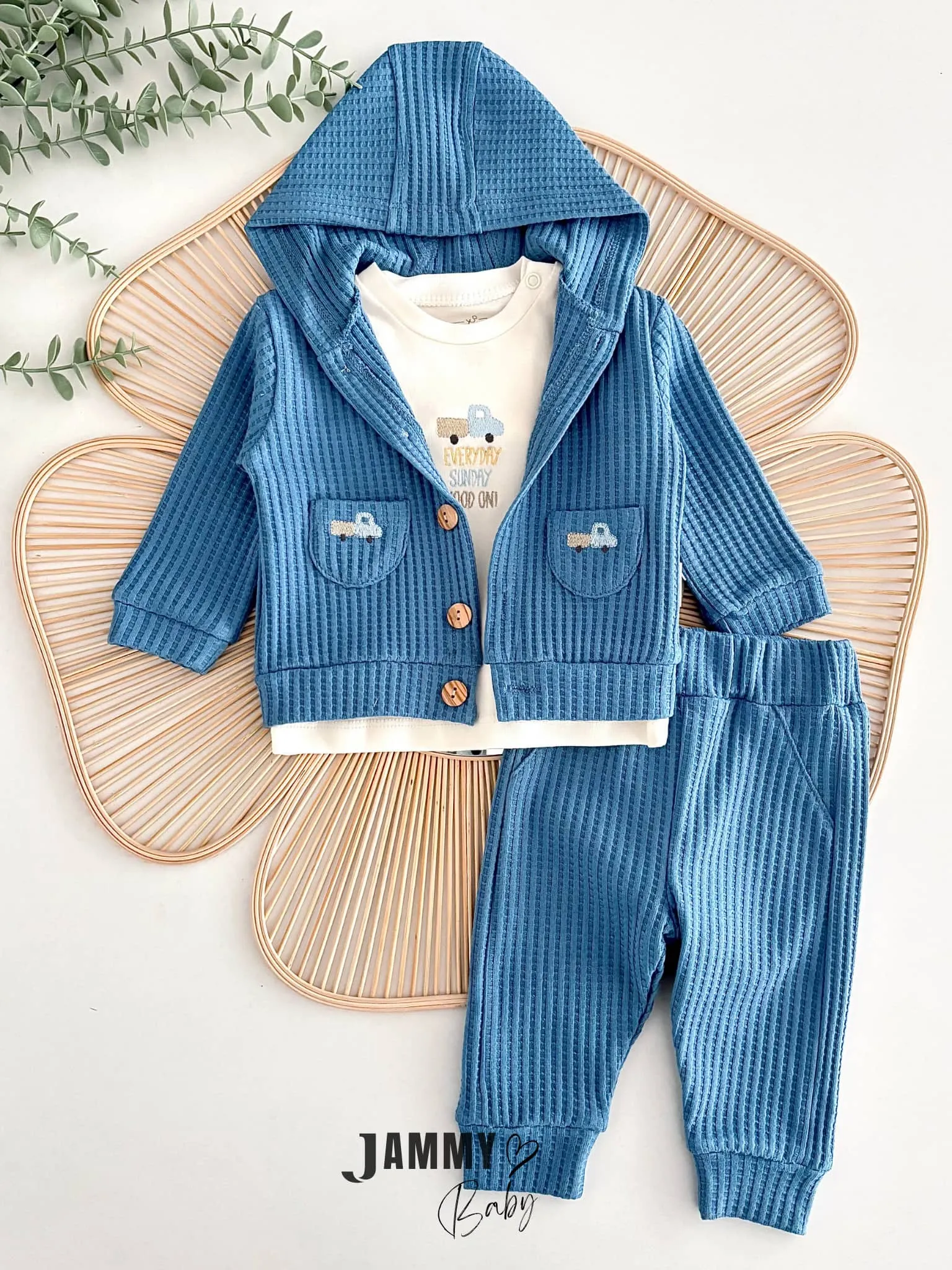 تصميم عصري وجميل للأطفال الذكور مع طبعة مميزة وقبعة مدمجة.