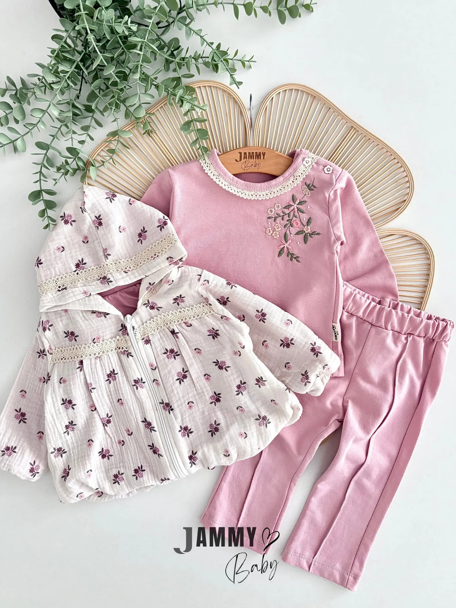 طقم مكون من قطعتين للفتيات يتضمن بدي مزخرف بياقة دائرية وأكمام طويلة مزود بأزرار لسهولة الارتداء، بالإضافة إلى قبعة متناسقة. مصنوع من 100% قطن ناعم ومريح، مناسب لجميع الفصول، ويمكن غسله عند 40 درجة مئوية. تصميم عصري يناسب الاستخدام اليومي.