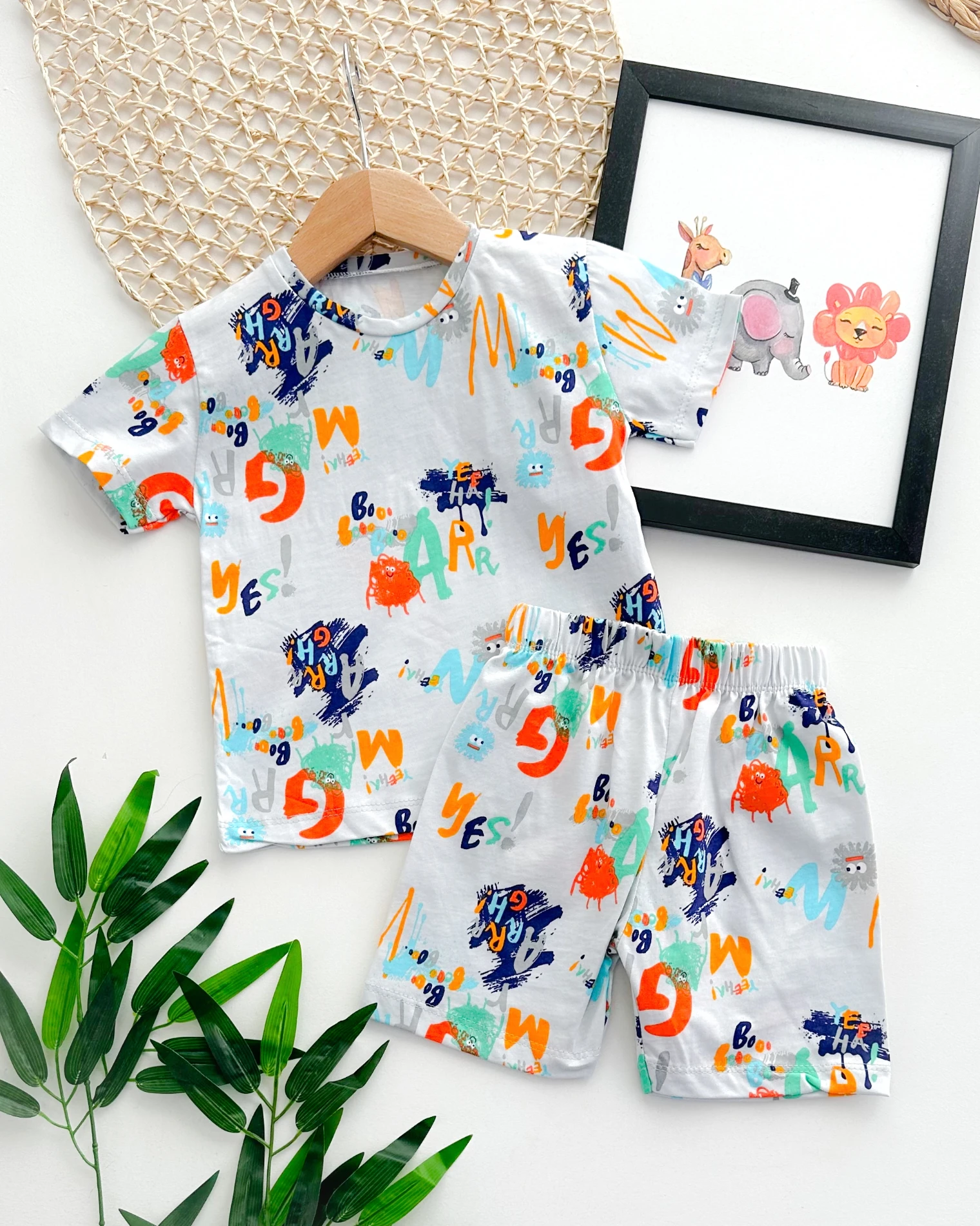 طقم أفرول مطبوع بأكمام طويلة و أزرار كبس مع قبعة للأولاد الرضع - Beyond Store