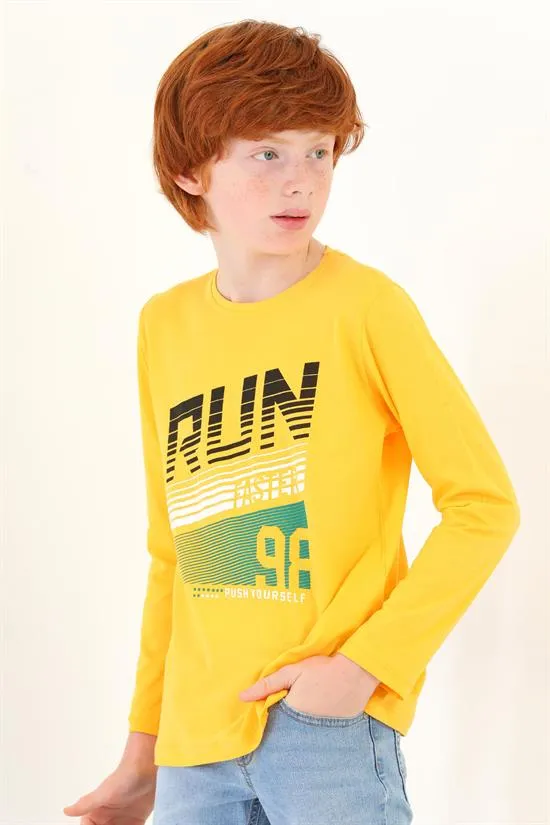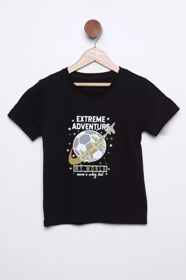 تيشيرت بأكمام قصيرة و طبعة أمامية للأولاد - Beyond Store