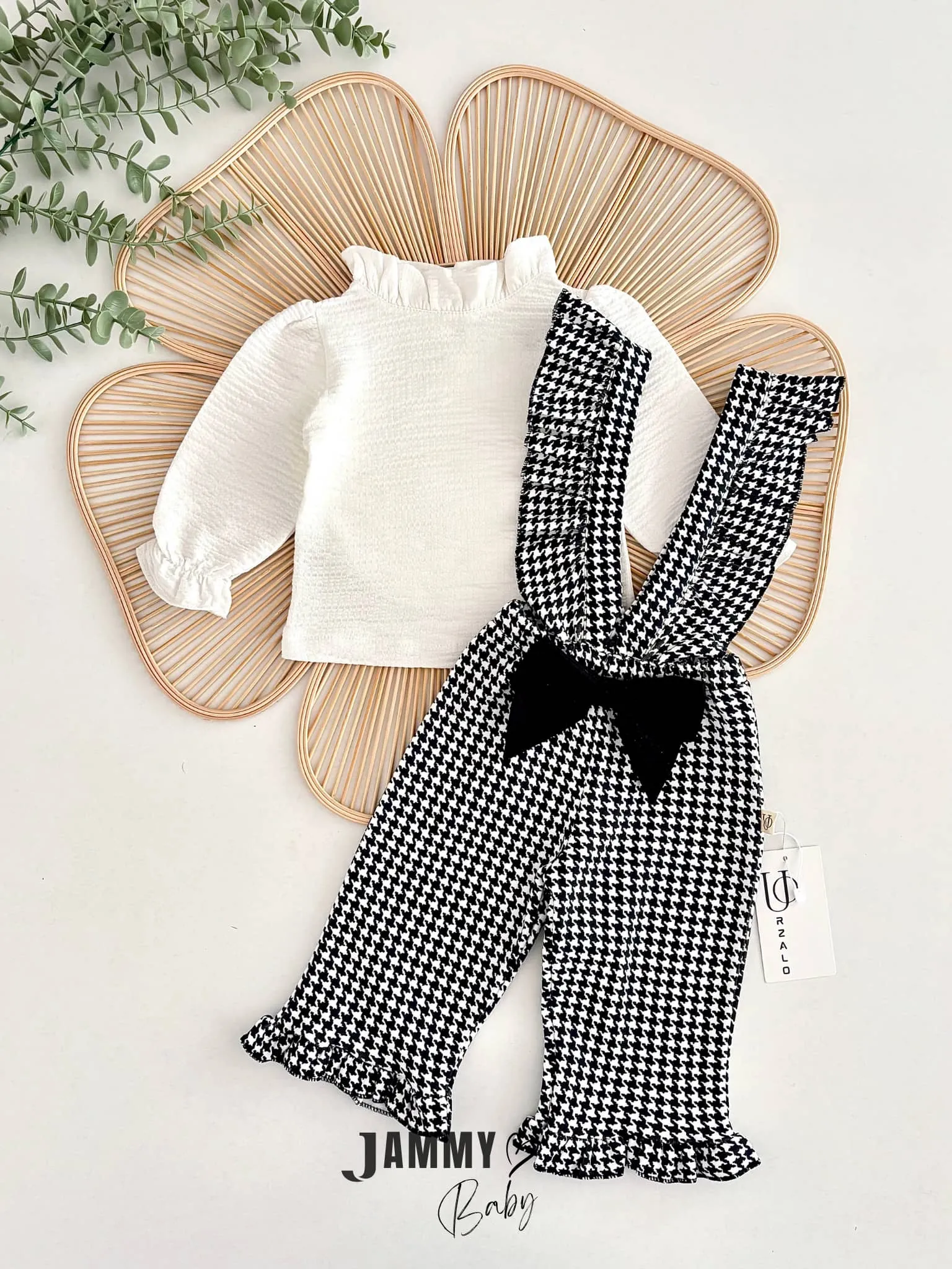 طقم مولودة أنيق مكون من 5 قطع، يتضمن بدي بياقة V مع أكمام طويلة مزين بنقوش حيوانية، سروال بخصر مطاطي وأقدام مغطاة لراحة إضافية، قبعة متناسقة، بالإضافة إلى تفاصيل عملية مثل الأزرار في البودي. مصنوع من قطن 100% ناعم، مناسب لجميع الفصول، سهل الغسيل عند 40 درجة مئوية. تصميم عصري ومريح للاستخدام اليومي.