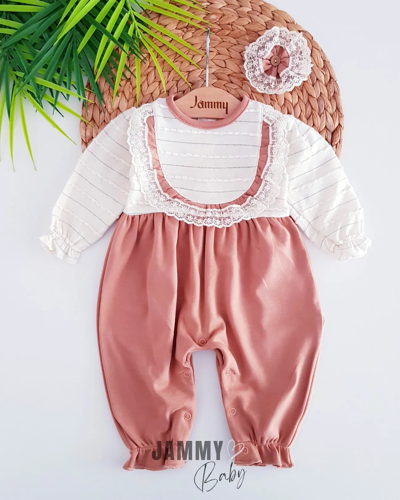 طقم بناتي بأكمام طويلة وياقة دائرية، مصنوع من 100% قطن محبوك، مزخرف بتصميم مطبوع مع أزرار ضغط لسهولة الارتداء. المقاسات هي الطول 44 سم والعرض 24 سم مع فرق 1 سم بين الأحجام، مناسب لجميع الفصول ويمكن غسله في درجة حرارة 40 درجة.