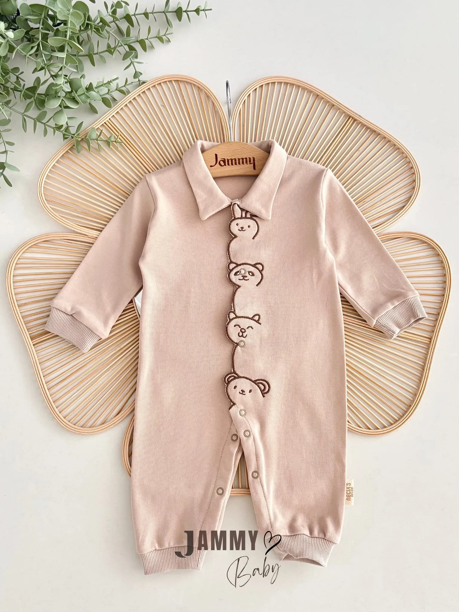 طقم بناتي بأكمام طويلة وياقة دائرية، مصنوع من 100% قطن محبوك ، مزخرف بتصميم مطبوع مع أزرار ضغط لسهولة الارتداء. المقاسات هي الطول 44 سم والعرض 24 سم مع فرق 1 سم بين الأحجام، مناسب لجميع الفصول ويمكن غسله في درجة حرارة 40 درجة.
