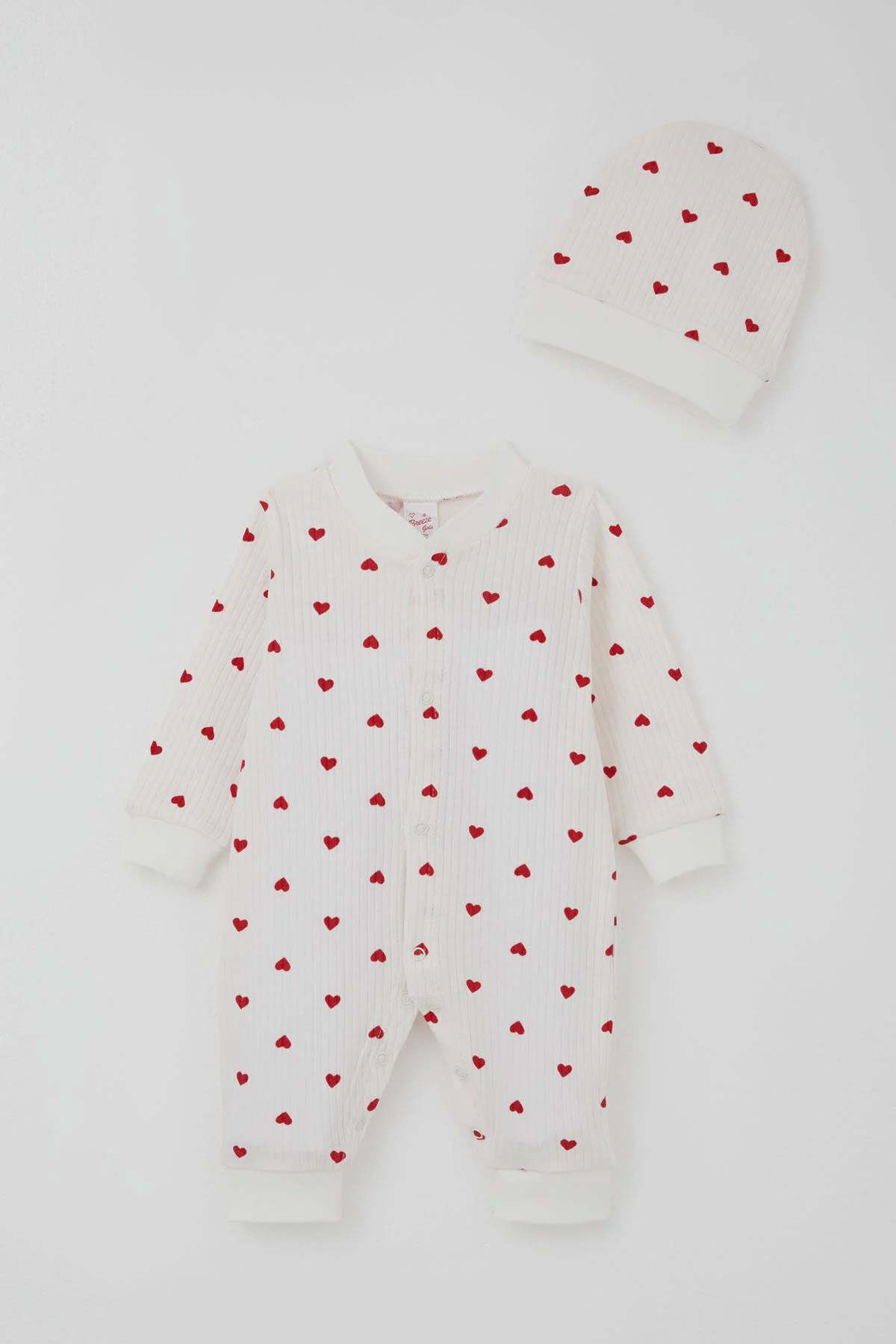 طقم بناتي بأكمام طويلة وياقة دائرية، مصنوع من 100% قطن محبوك ، مزخرف بتصميم مطبوع مع أزرار ضغط لسهولة الارتداء. المقاسات هي الطول 44 سم والعرض 24 سم مع فرق 1 سم بين الأحجام، مناسب لجميع الفصول ويمكن غسله في درجة حرارة 40 درجة.