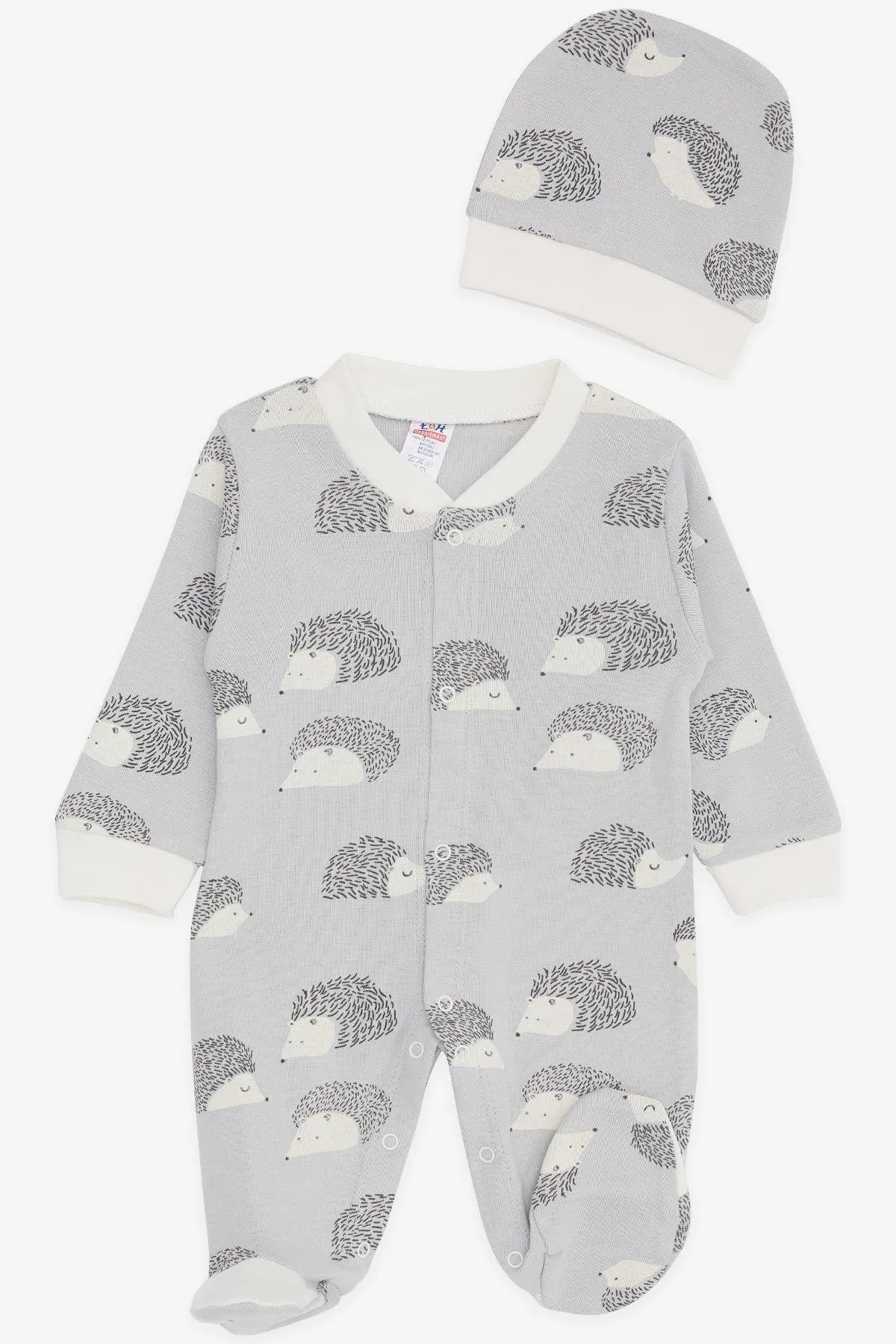 تصميم الأكمام الطويلة و ياقة دائرية مع قبعة و زيبو مزود بأقدام يوفران الدفء والأناقة.