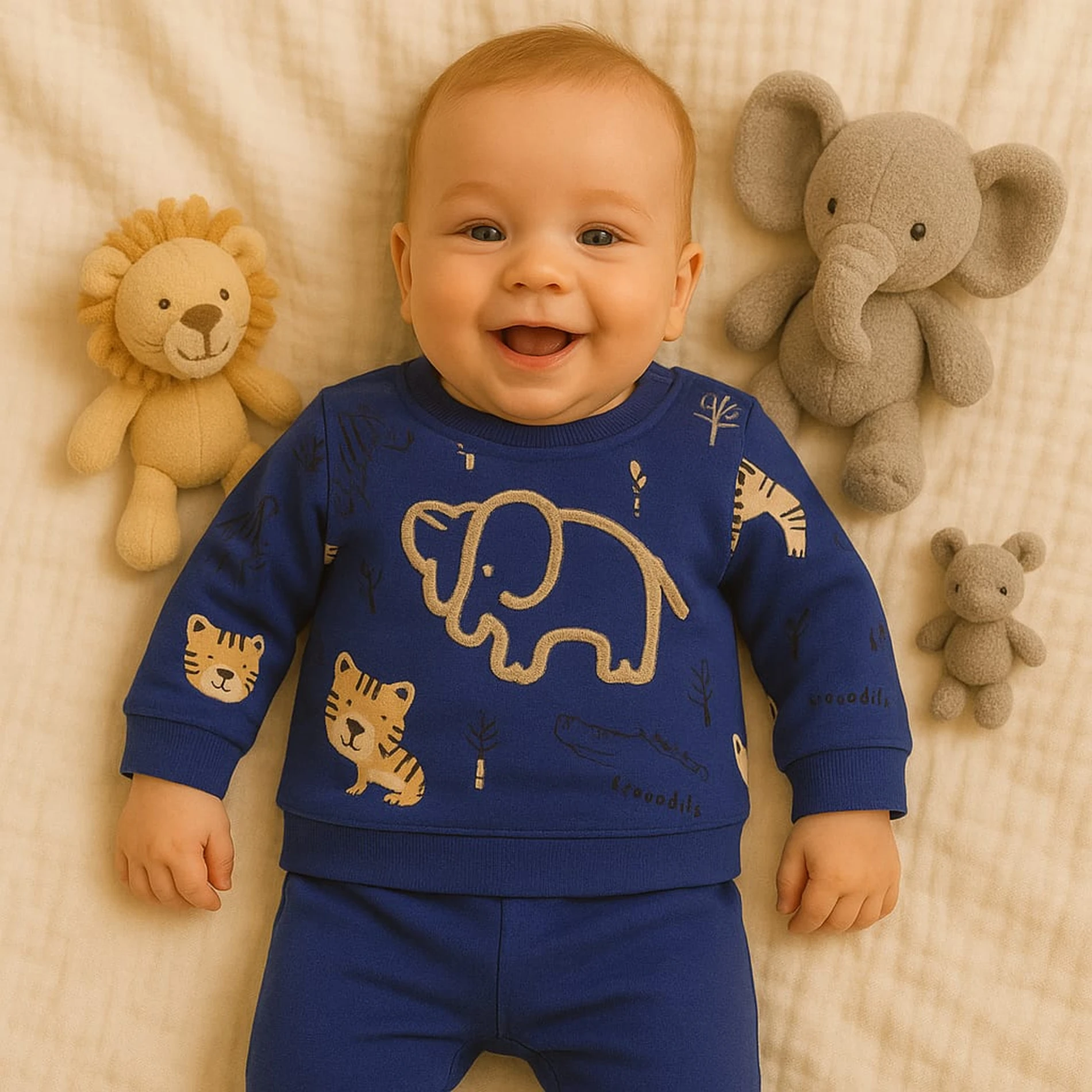 طقم أفرول مطبوع بأكمام طويلة مع قبعة للأولاد الرضع - Beyond Store