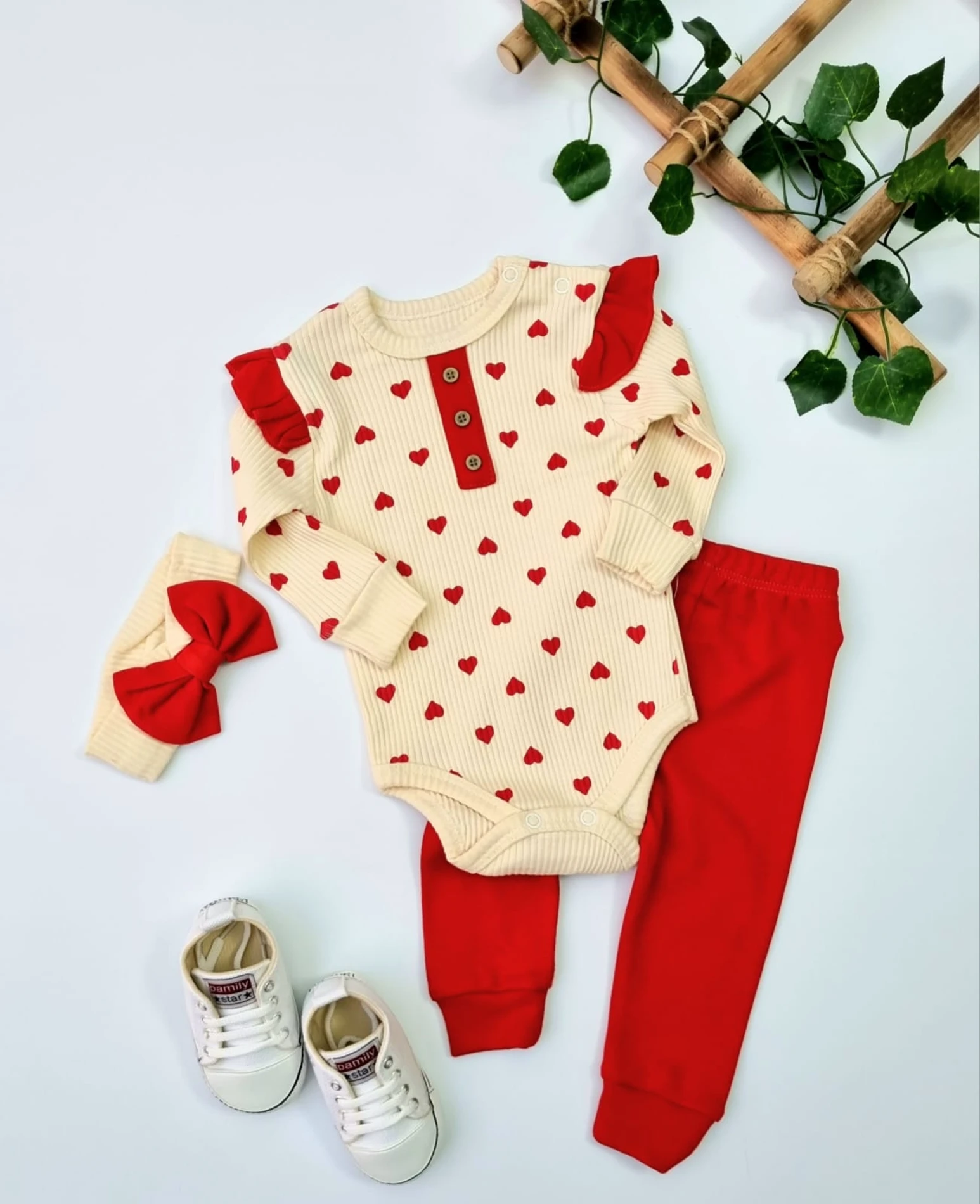 طقم مكون من 3 قطع للبنات (من 1 سنة) مع زي مريح من القطن والفرو الصناعي. يحتوي على زي مع كم طويل وياقة قبعة ثابتة، وسروال بخصر مرن مع إغلاق بالضغط. مناسب للأجواء الخريفية والشتوية.