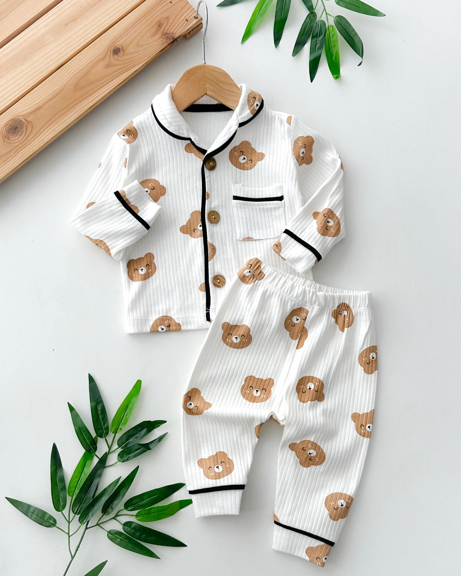 طقم بيجامة للأولاد الرضع بأكمام طويلة بياقة دائرية مطرزة برسومات الجراء - Beyond Store