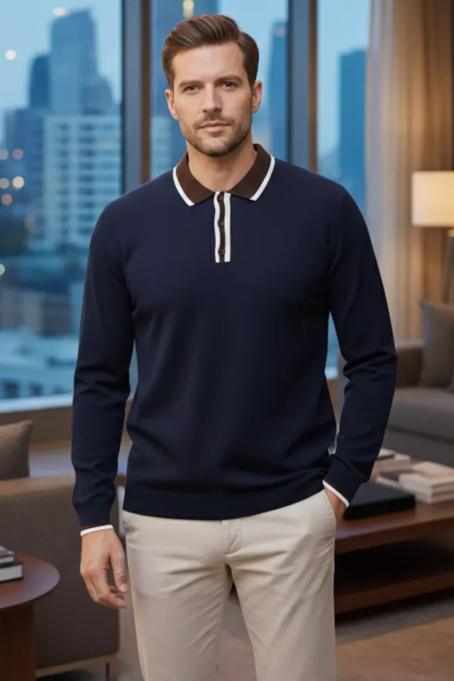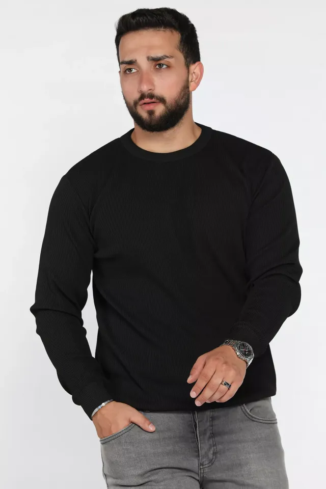 سويتر رجالي مضلع بقصة واسعة من النسيج المحاك