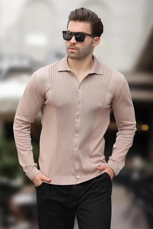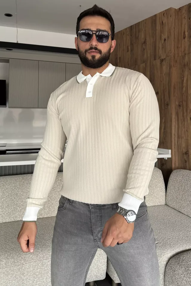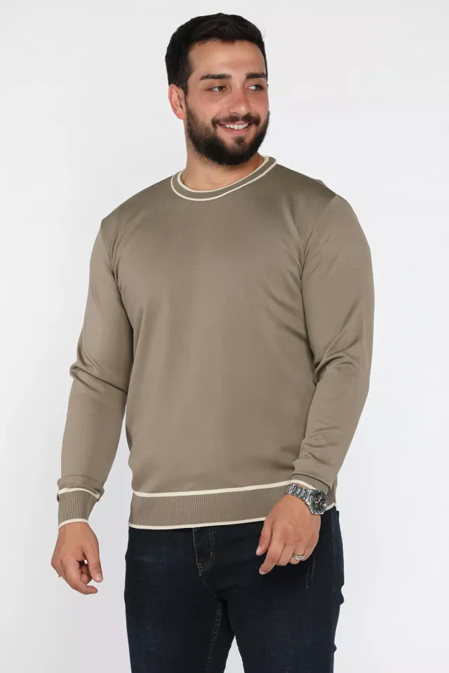 كنزة رجالية مضلعة فضفاضة بياقة دائرية - Beyond Store
