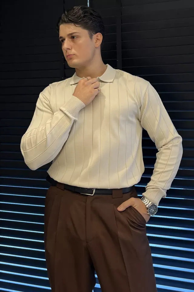 سويت شيرت رجالي بولو ياقة وقصة واسعة مع نسيج مضلع