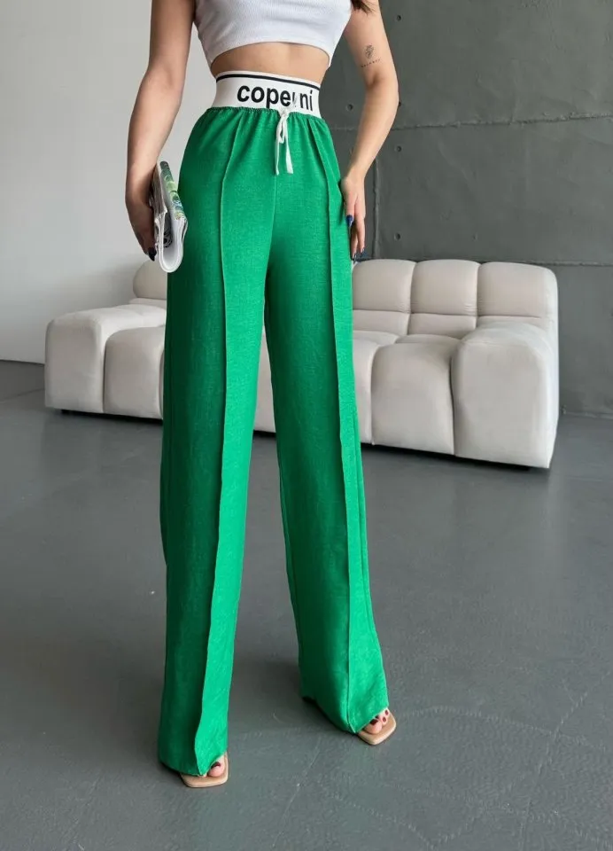 بنطال كاجوال بقصة واسعة بخصر مطاطي وجيب مزدوج